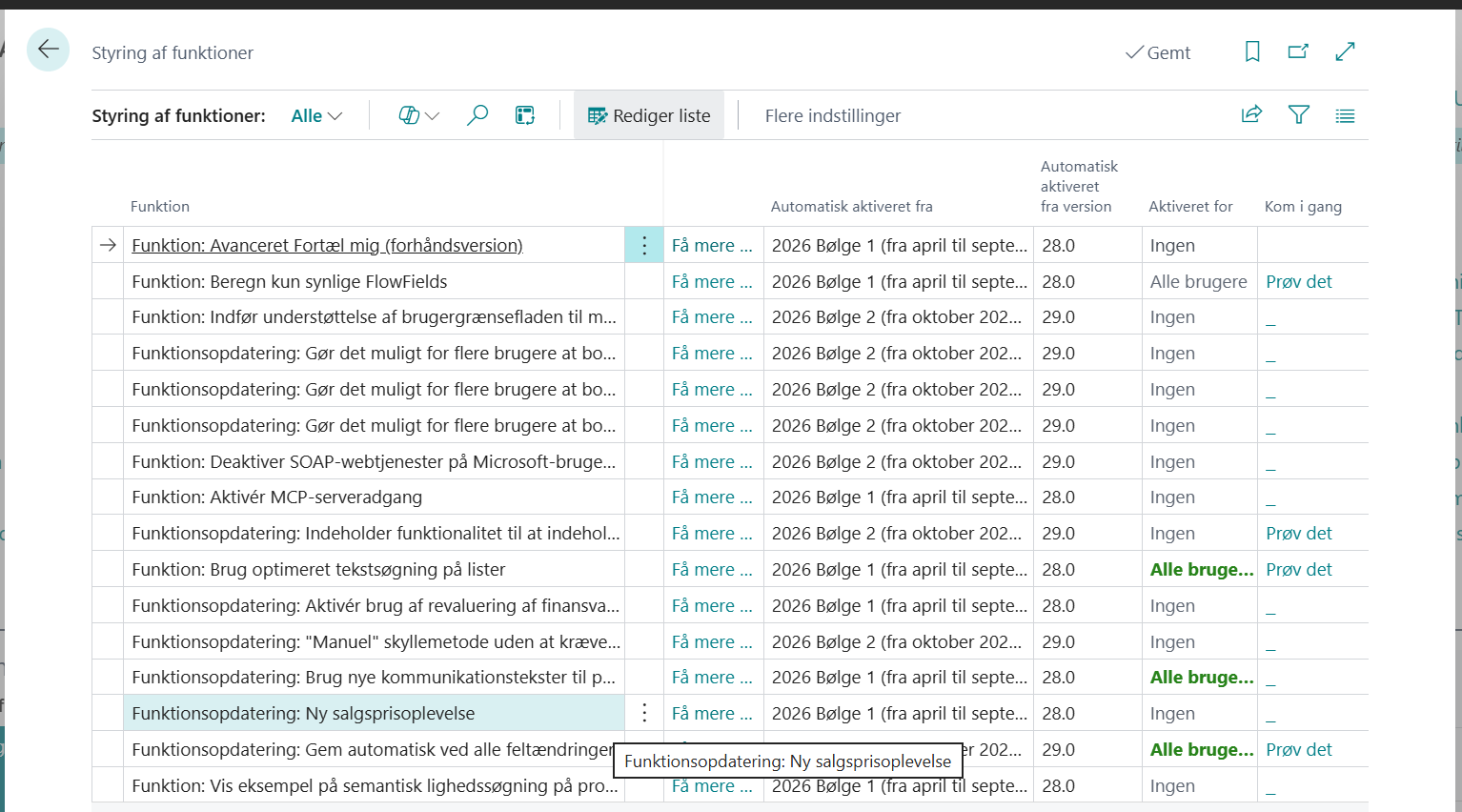 Aktivering af Ny salgsprisoplevelse sker i øjeblikket manuelt via Styring af funktioner. Det er ikke tilfældigt – og faktisk en fordel da denne ændring helst skal vælges, så Microsoft ikke skal tage valget for os.