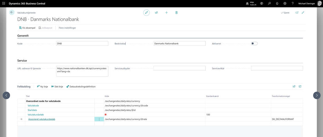 feltet URL-adresse til tjeneste skal du angive følgende URL: https://www.nationalbanken.dk/api/currencyratesxml?lang=da