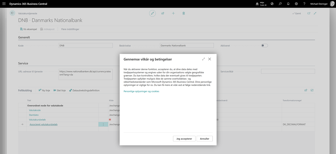 Nedenfor viser vi trin for trin, hvordan Business Central konfigureres til automatisk at hente valutakurser fra Danmarks Nationalbank.