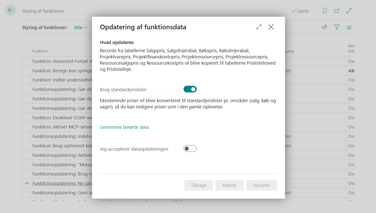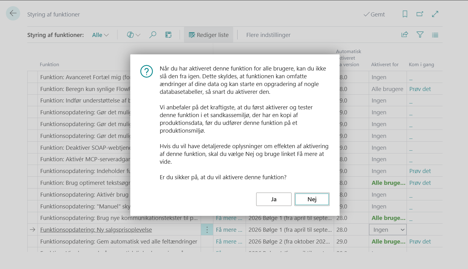 Aktivering af Ny salgsprisoplevelse sker i øjeblikket manuelt via Styring af funktioner. Det er ikke tilfældigt – og faktisk en fordel da denne ændring helst skal vælges, så Microsoft ikke skal tage valget for os.