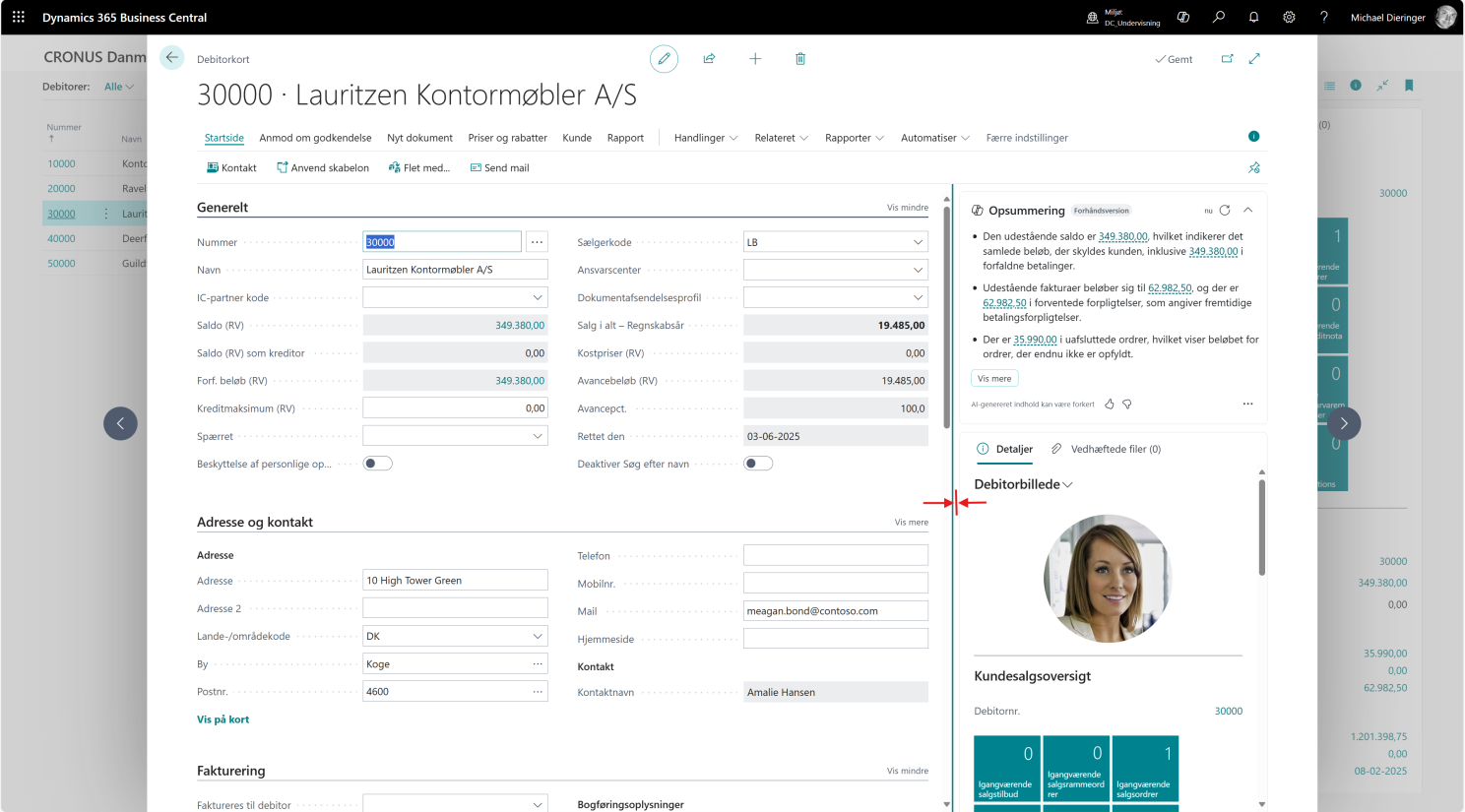 Når man som bruger arbejder i Business Central, kan der hurtigt blive mange informationer på skærmen. Det gælder især på sider som Debitorkortet, hvor både datafelter og faktabokse kæmper om pladsen.
