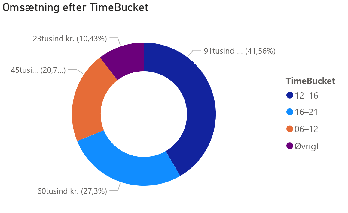 I vores rapportering opdeler vi dagen i tidslommer og ser på, hvornår omsætningen reelt bliver skabt. Ikke hvornår der er flest besøg, men hvornår der bliver handlet. Det giver et langt stærkere beslutningsgrundlag for marketing og kampagner, end mange webshops arbejder med i dag.